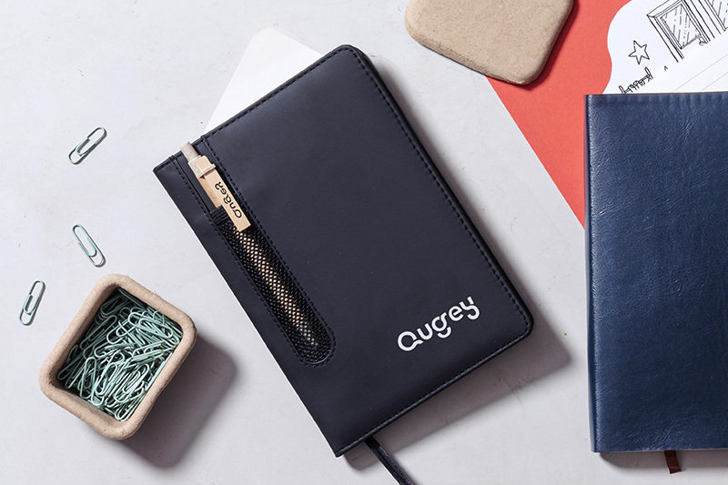 Libreta con tapas en poliéster reciclado y logo en vinilo textil